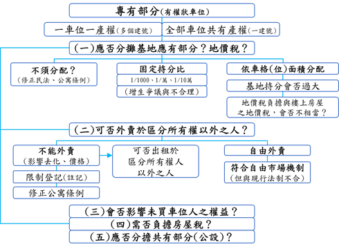 (二)專有部分登記之停車位,應否分攤基地應有部分?如何分擔?會否增加地價稅之負擔?