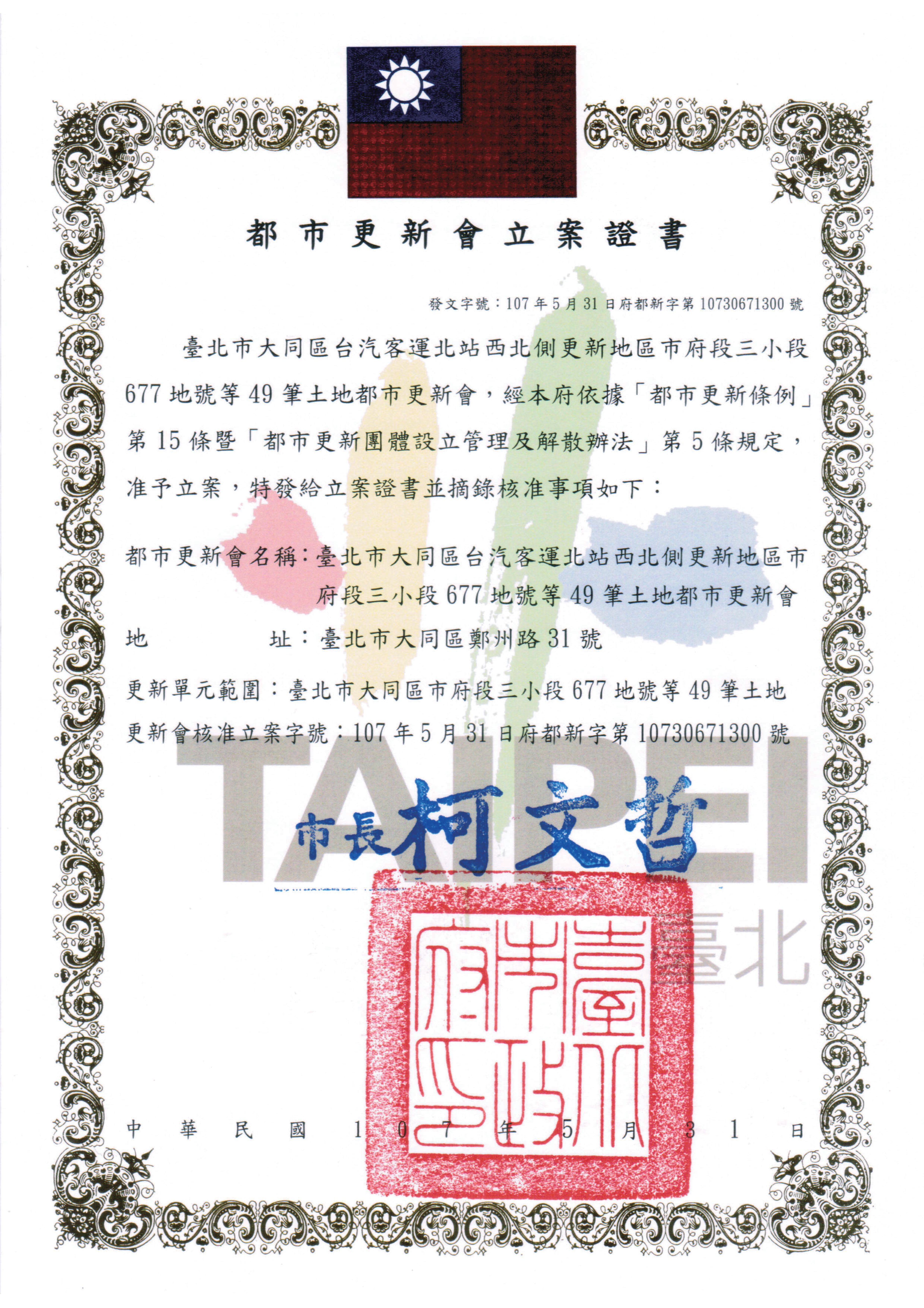 金名城更新會立案證書